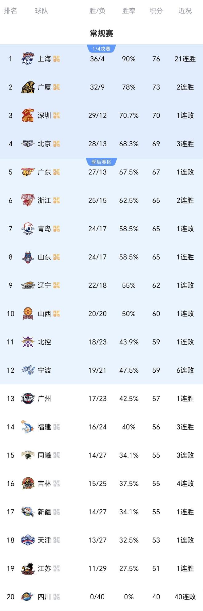 随着山东终结深圳15连胜 广厦翻盘北控 北京逆转青岛 CBA排名大变
